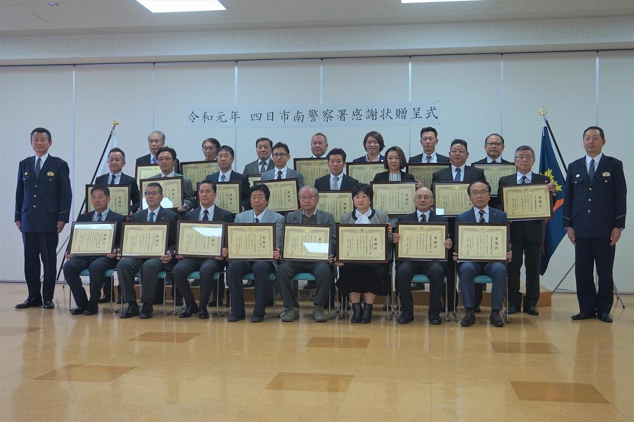 12月16日(月)に「令和元年 四日市南警察署感謝状贈呈式」が行われ、PEARLS(パールズ)も表彰いただきました。