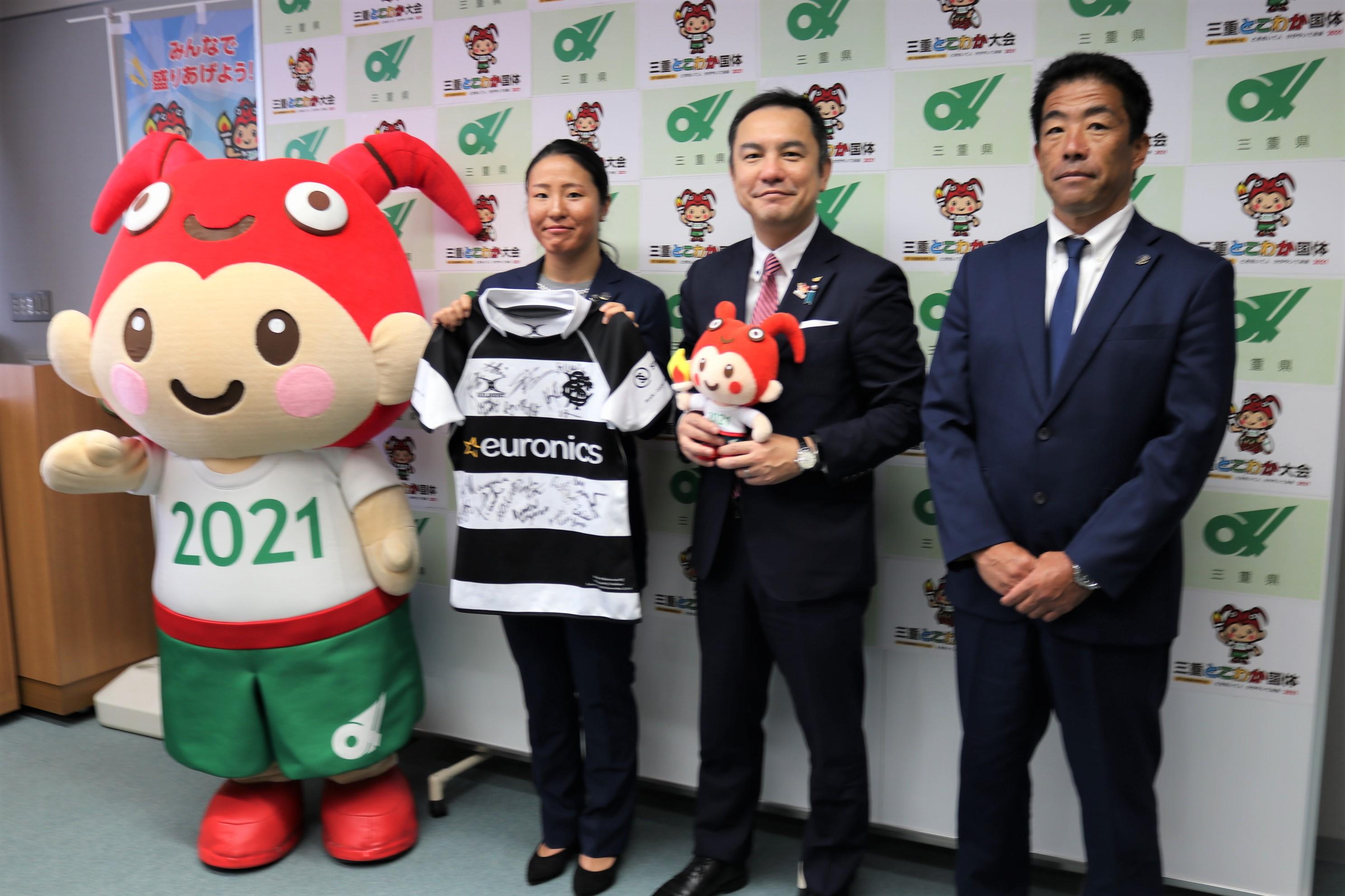 12月19日(木)、PEARLS(パールズ)の齋藤久GMと齊藤聖奈選手(住友電装)が鈴木英敬三重県知事を表敬訪問しました。