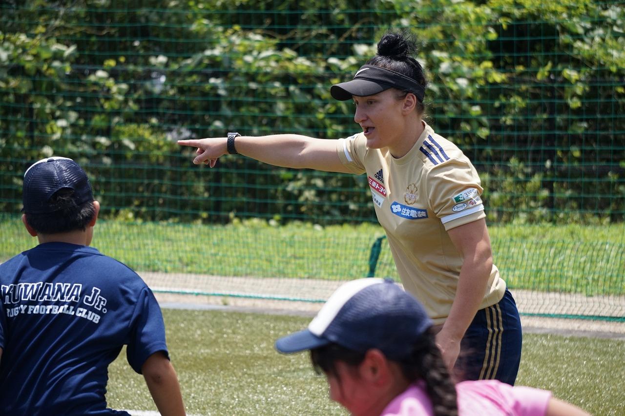 「楽しみながら学ぶ」をテーマに、英語と日本語を織り交ぜながら、桑名ジュニアの子供たちやコーチの皆さんと一緒に笑顔で楽しみ、PEARLSのメンバーも元気をいただきました。今回、新型コロナウィルスの感染防止対策を含めた準備、安心・安全に運営をいただいた諏訪コーチをはじめ、桑名ジュニアラグビースクールの関係各位・ご父兄の皆様には、心より感謝申し上げます。