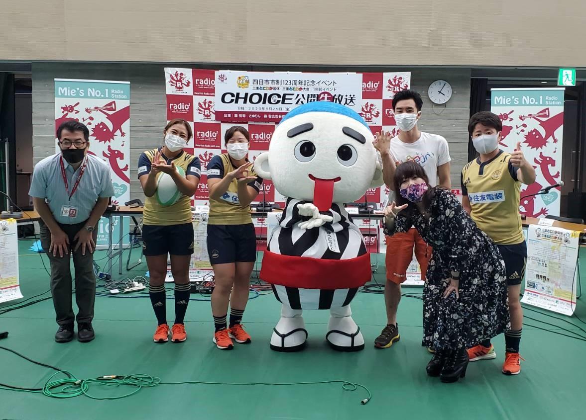 9月25日(金)四日市市制施行123周年記念「三重とこわか国体・とこわか大会」1年前イベント、FM三重「CHOICE」公開生放送にPEARLS(パールズ)から山本さやか選手(日商)、山中侑香選手(コスモ石油)、和田萌里選手(住友電装)の3選手が出演しました。