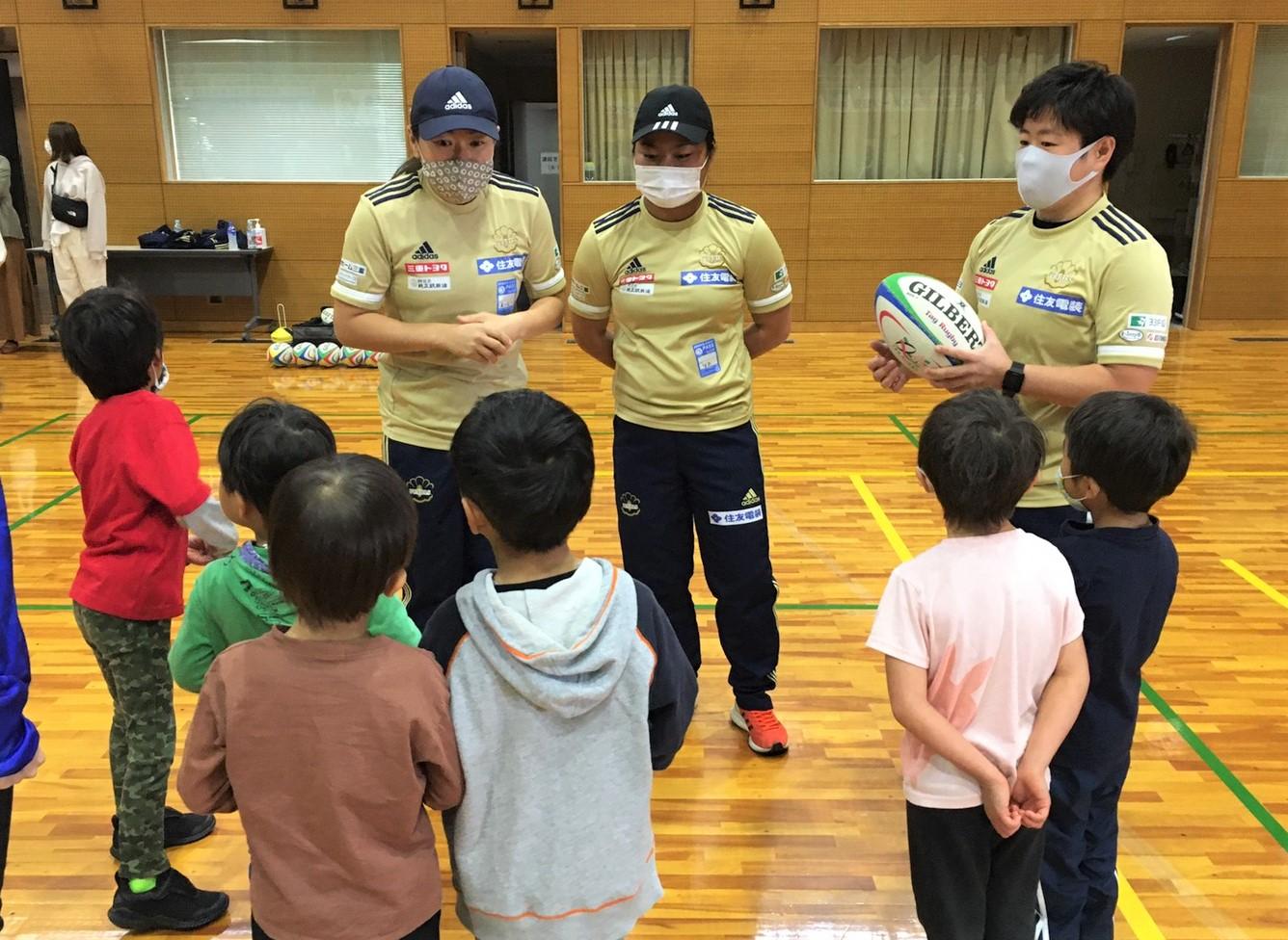 10月31日(土)安濃中央総合公園内体育館にて行われた「スポーツ祭り2020 in 津市」において、ラグビークラスの講師として伊藤絵美マネージャー(住友電装)と山本さやか選手(日商)、前田奈緒選手(日商)が参加しました。