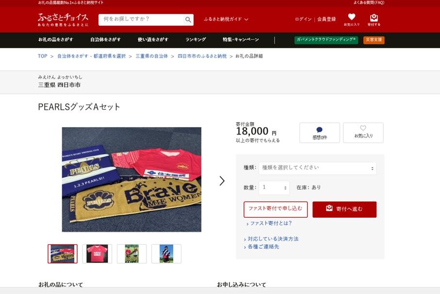 四日市市とホームタウン包括連携協定を締結している女子ラグビーチームPEARLS(パールズ)は、四日市市のふるさと納税の返礼品としてPEARLSグッズセットの出品を開始しました。