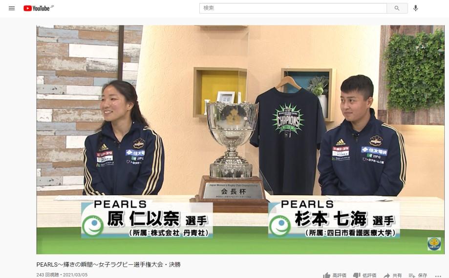 先日優勝した「第7回女子ラグビーフットボール選手権大会」の模様がたっぷり収録されており、今シーズン限りで引退する原選手と杉本選手のトークも放送されています。