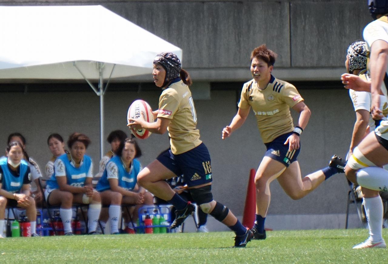 初日は2勝1敗でプールCの2位となり、準々決勝の相手は2年前の東京大会ファイナルで戦った強豪ARUKAS QUEEN KUMAGAYA。試合開始直後から緊張感のある攻防が続き、前半は5点ビハインドで折り返すも、後半2分齊藤聖奈(住友電装)のジャッカルから山本実(住友電装)がゴールラインに飛び込み逆転のトライ。このまま流れを引き寄せるかと思われましたが、ディフェンスの隙を突かれ連続トライを許し万事休す。試合終了間際に意地のトライを奪うも14-17(前半0-5)で敗れました。