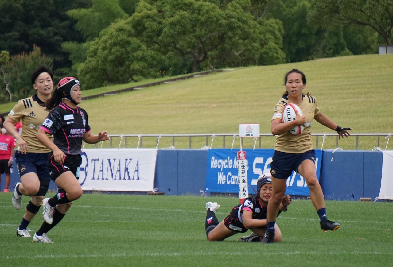 2試合目のYOKOHAMA TKM戦では、攻守にPEARLSらしいラグビーを展開して会場を沸かせ、4トライを奪い26-5(前半14-5)で快勝しました。