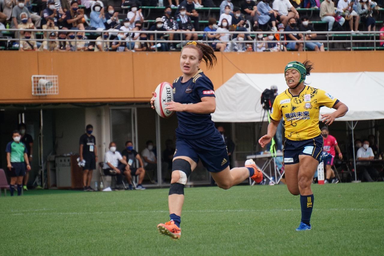 敗戦のショックから気持ちを切り替えてYOKOHAMA TKMとの試合では、末結希(住友電装)の2トライを含む合計5トライを奪い、31-19(前半14-12)と圧倒的な攻撃力を見せつけて勝利を収めました。