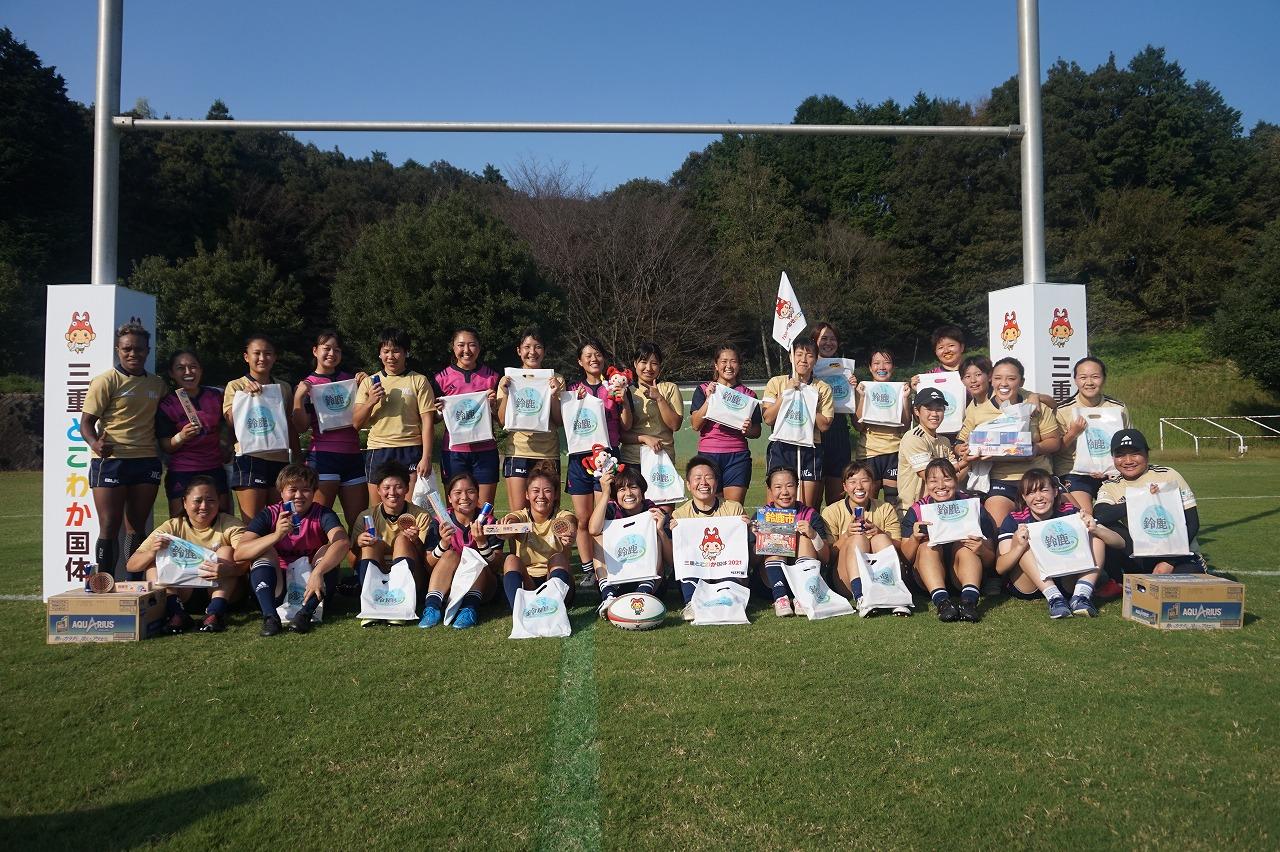 試合後には鈴鹿市国体推進課の方から三重国体のために準備いただいていた記念品を贈呈いただき、みんな笑顔で記念撮影をしました。三重国体は実現できず非常に残念でしたが、こうして三重県に集まってきてくれた仲間と一緒にラグビーができることはとても幸せなことだと、改めて感じることが出来ました。三重とこわか国体の開催に向けてご尽力いただいた全ての皆様に感謝申し上げますと共に、PEARLSの更なる飛躍を誓います。
