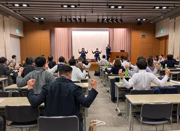 第2部では健康経営をキーワードに『トップアスリートから学ぶ簡単ストレッチ法』と題して、伊藤マネージャー指導の下、オフィスでもできるストレッチ等を実践し、心と身体をスッキリして参加者の皆様へ健康に対する意識を再確認していただきました。