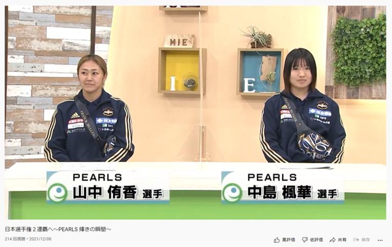 12月8日(水)に放送にされた三重テレビのニュース情報番組Mieライブのコーナー『PEARLS 輝きの瞬間』に、山中侑香選手(コスモ石油)と中島楓華選手(三十三銀行)が生出演しました。