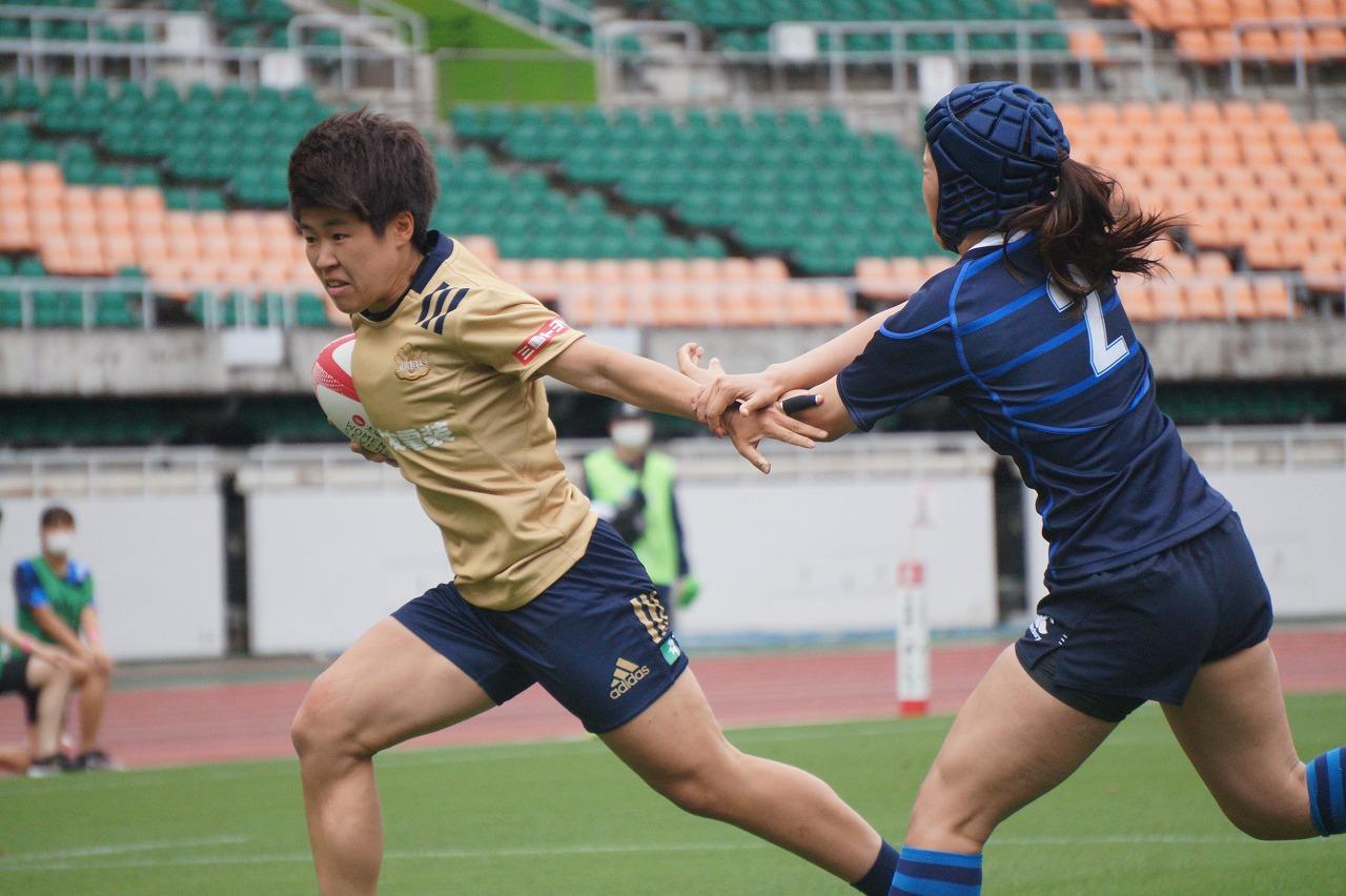 第1試合は今大会のゲストチームとして参加した国際武道大学ラグビー部女子を相手に、57-0(前半29-0)で勝利。9トライの全てが異なる選手がスコアする全員ラグビーで圧勝しました。