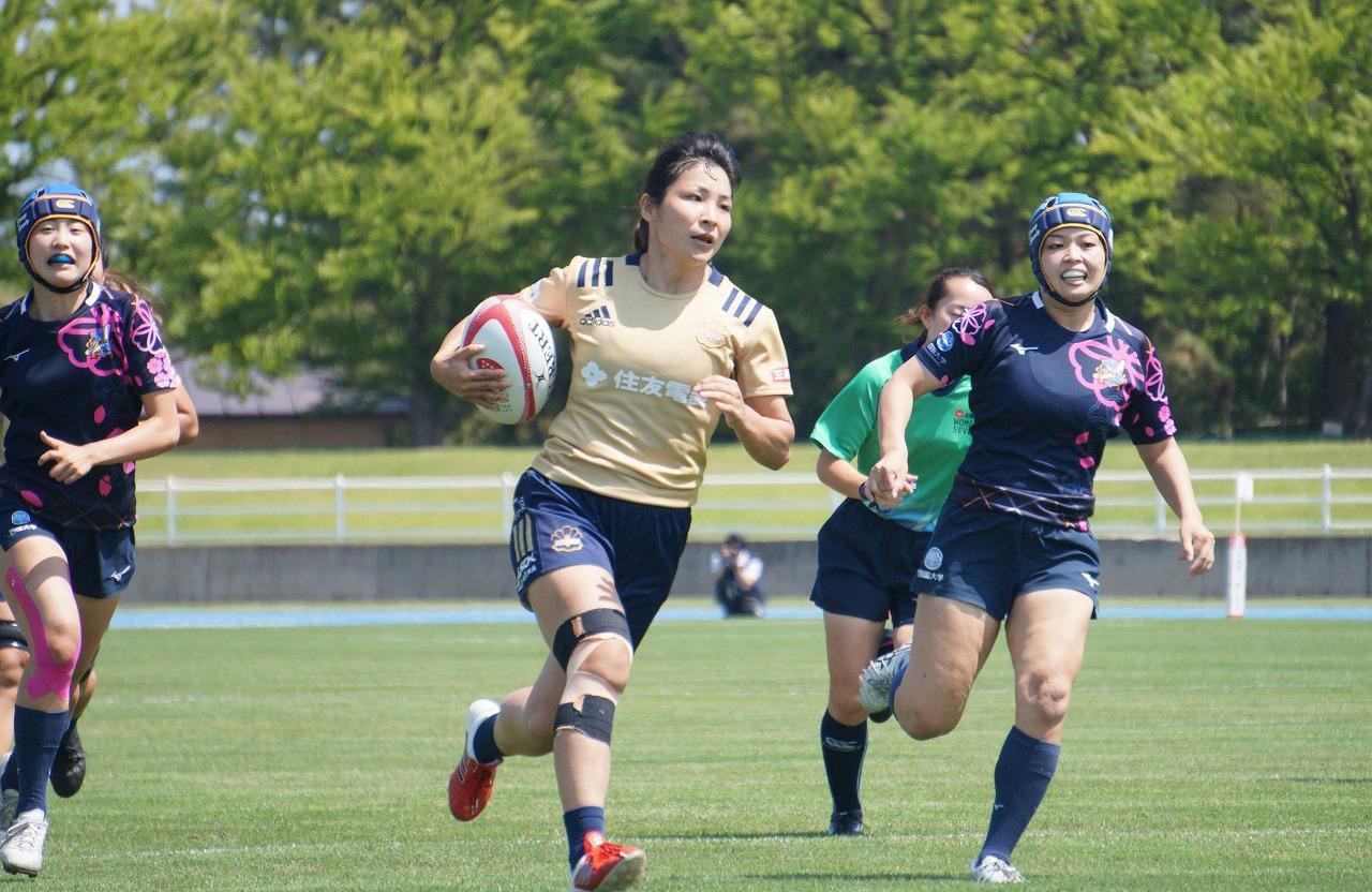 1試合目は四国大学女子ラグビー部と対戦し、片嶋佑果選手(日商)のトライで口火を切るとジャネット・オケロ(ケニア)選手の3連続トライなどで相手を圧倒。33-5(前半19-0)で幸先の良いスタートを切りました。