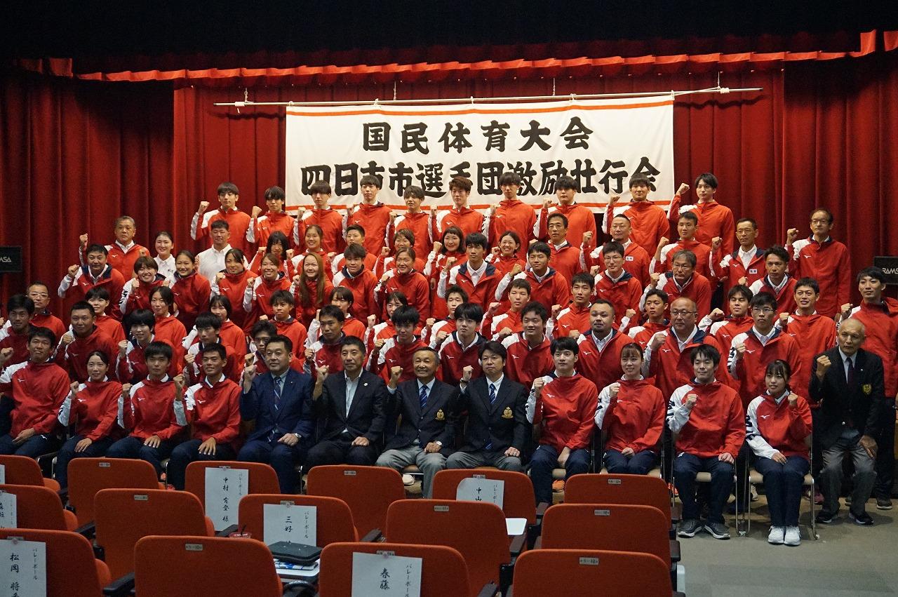 いよいよ3年ぶりに開幕する国民体育大会(栃木県)のチーム三重結団壮行式が22日(木)、四日市市と三重県主催でそれぞれ行われました。