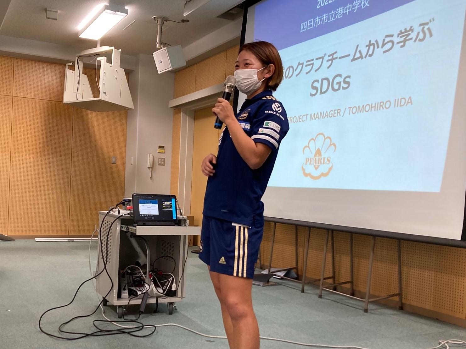 10月12日(水)四日市市立港中学校にて、1年生を対象に『地域のクラブチームから学ぶSDGs』と題した授業をさせていただきました。