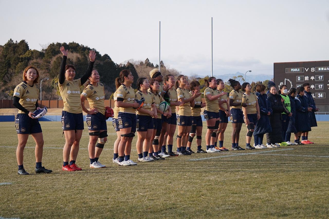 今回女子ラグビーの国内公式戦で初の有料ゲームとなりましたが、沢山の方にチケットをご購入いただき、スタンドを熱気で埋めていただきました。PEARLSファミリーの皆様には勝利の笑顔をお届けすることは叶いませんでしたが、皆様の声援が選手たちのモチベーションとなり走り続けることが出来ました。寒い中会場までお越しいただいた皆様、またライブ配信をご覧いただき応援してくださった皆様には心より感謝申し上げます。
