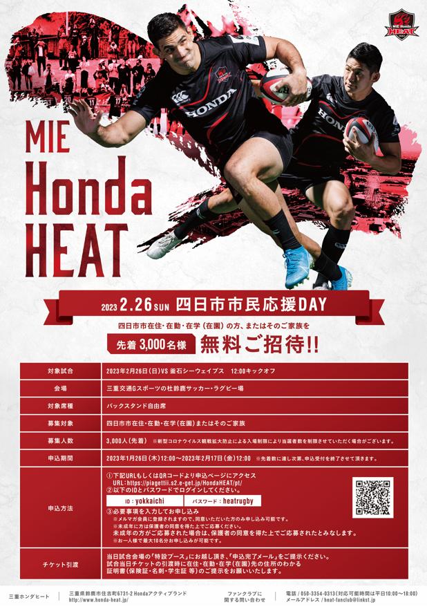 三重ホンダヒート四日市市民DAY(2/26)にPEARLSも参加します。