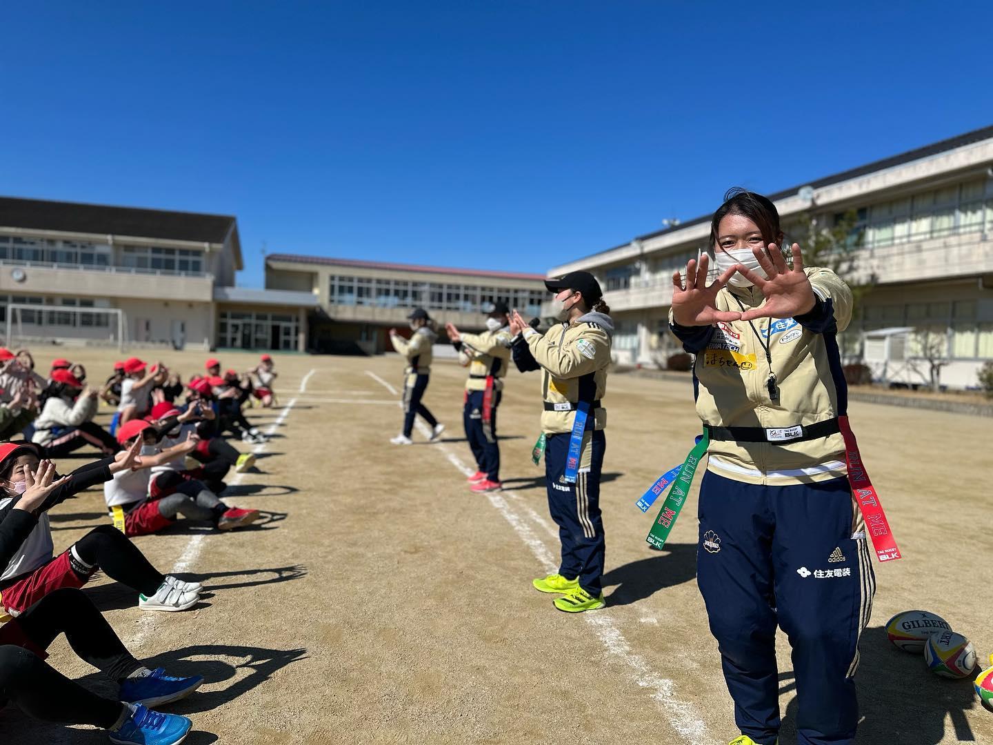 松阪市出身の玉井選手(パソナグループ)を中心に、舩橋選手(主体会病院)、土井望愛選手(すずらん診療所)、渡邉希海選手(すずらん診療所)が指導にあたり、生徒の皆さんと楽しくラグビーでふれあうことが出来ました。歓迎の寄せ書きも作ってくれて、選手たちも皆さんから元気をもらい幸せな時間を過ごすことが出来ました。