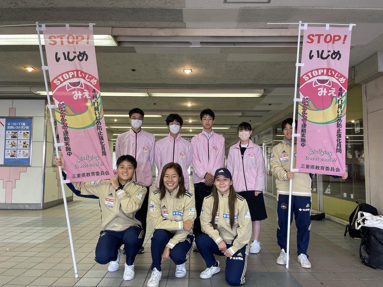 三重県教育委員会の子ども安全対策監は11月をいじめ防止強化月間と定めており、本日その取り組みの一環として、PEARLS(パールズ)はいじめ防止応援サポーターとして街頭啓発活動を近鉄四日市駅でポケットティッシュ配布といじめ防止の呼びかけを実施いたしました。