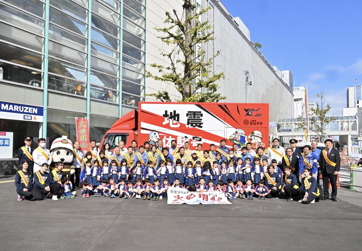 西村蒼空はPEARLSを代表して、マイクで秋の火災予防運動を呼びかけ、街頭啓発パレードを盛り上げました。またパレード終了後にはたいすい中央保育園の園児の皆さんと地震体験車も体験させていただきました。PEARLSは、地域の皆様とともに火災予防に貢献して参りますので、皆様も秋の火災予防運動の活動にご協力をお願い致します。