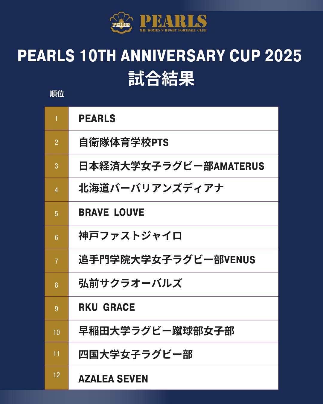 PEARLS 10th ANNIVERSARY CUP 2025 試合結果をご報告いたします。