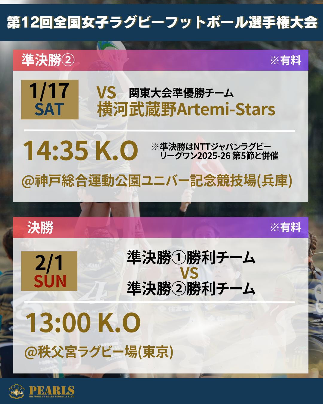 この度、1月17日(土)に開催される第12回全国女子ラグビーフットボール選手権大会 準決勝②に出場することが決定いたしました。
