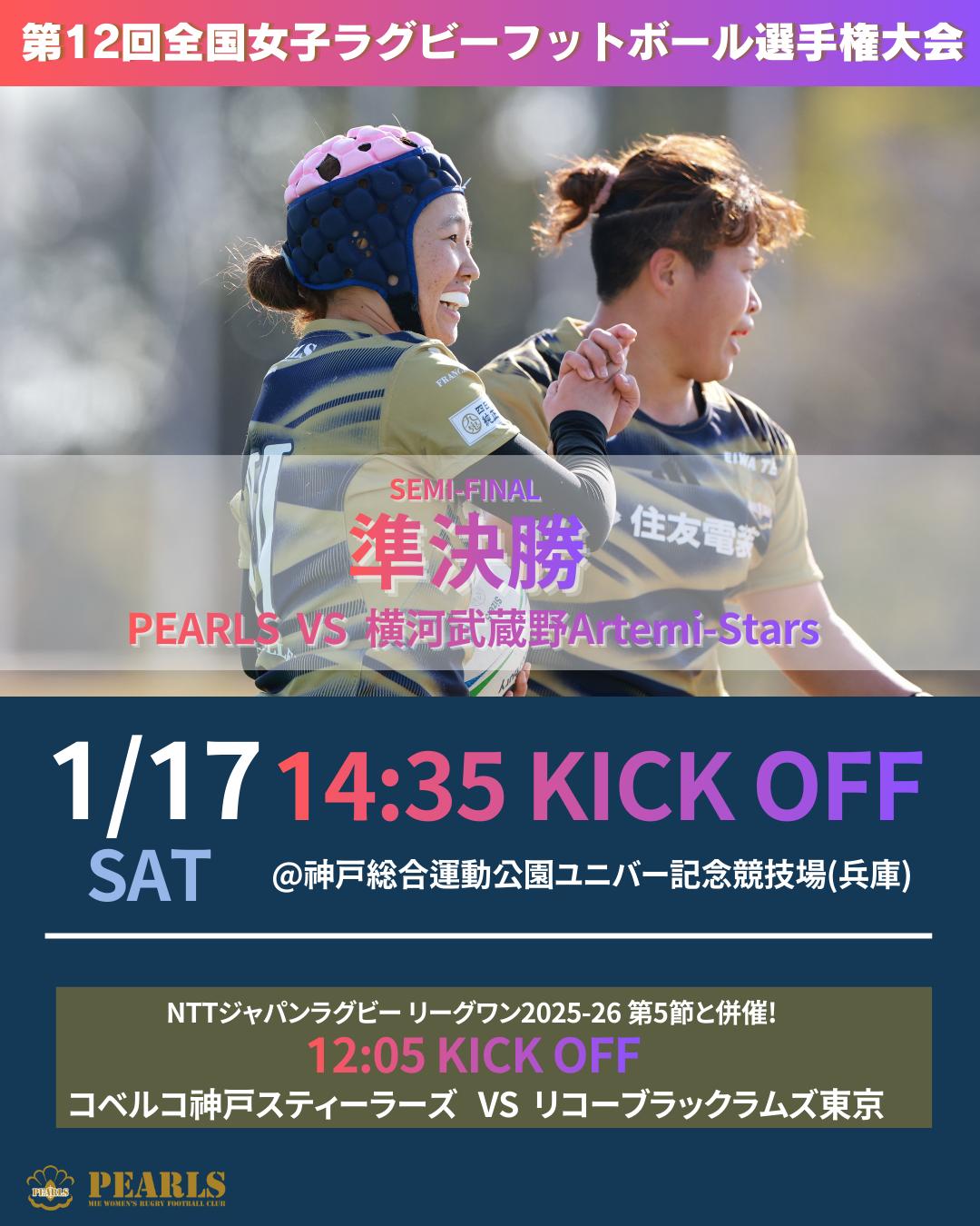1月17日(土)、第12回全国女子ラグビーフットボール選手権大会 準決勝に出場いたします。